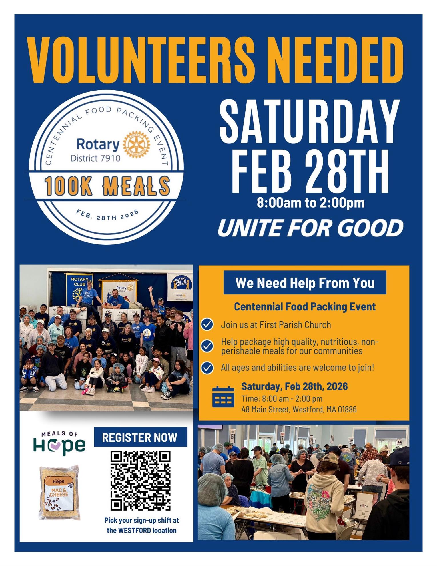 Westford), 8:30am to 10:30am. We will be making a short presentation about Westford Rotary.